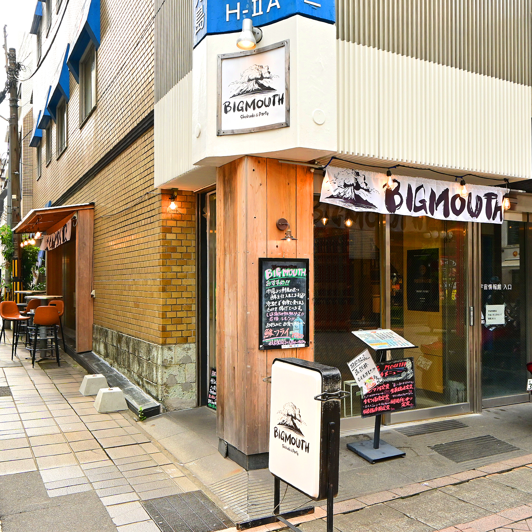 「BIGMOUTH Shokudo & Party」という食堂・居酒屋・バーも運営中。昼も夜もエンタメ空間を満喫してください♪