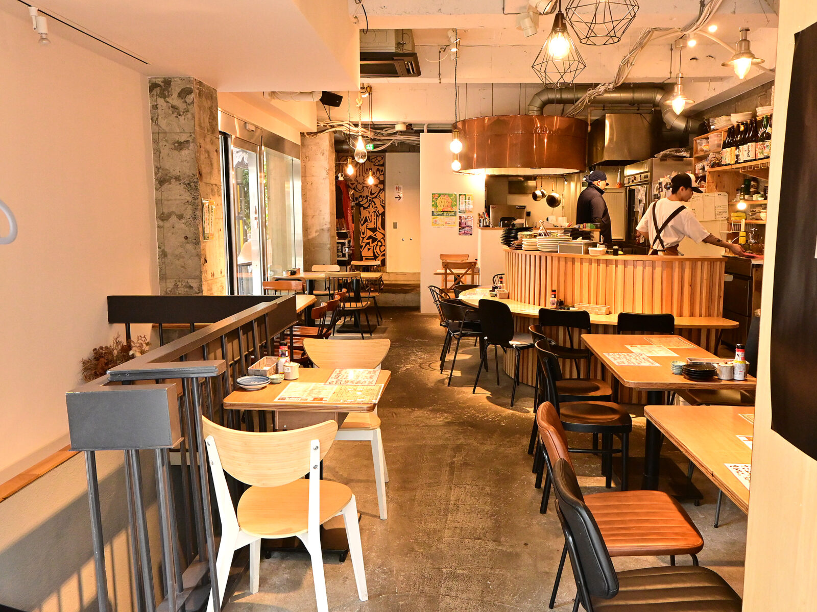 昼はほっと落ち着く食堂、夜は居酒屋やバーで盛り上がれる