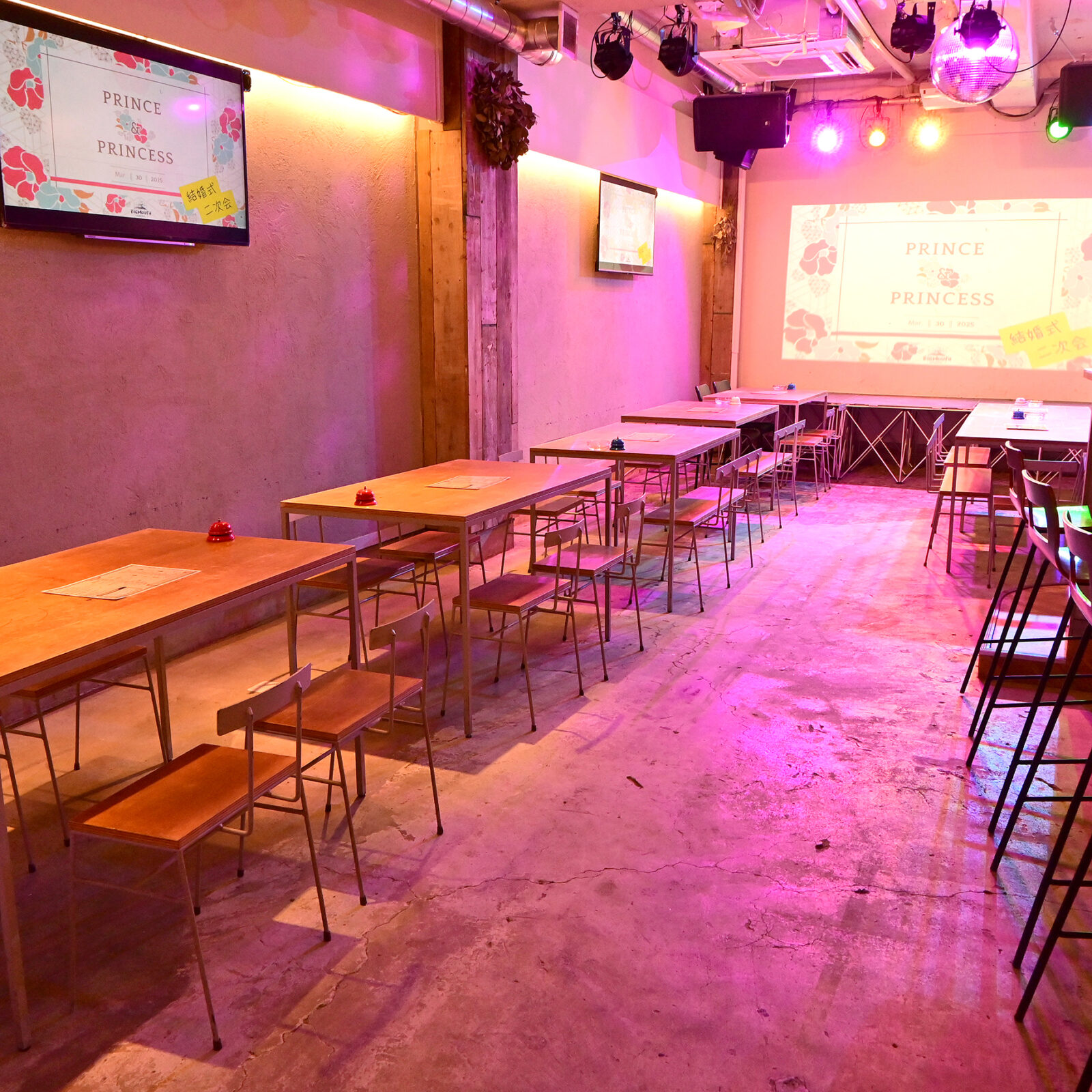 | Shokudoフロア(ビル1階) | Partyフロア(ビル地下1階) |
